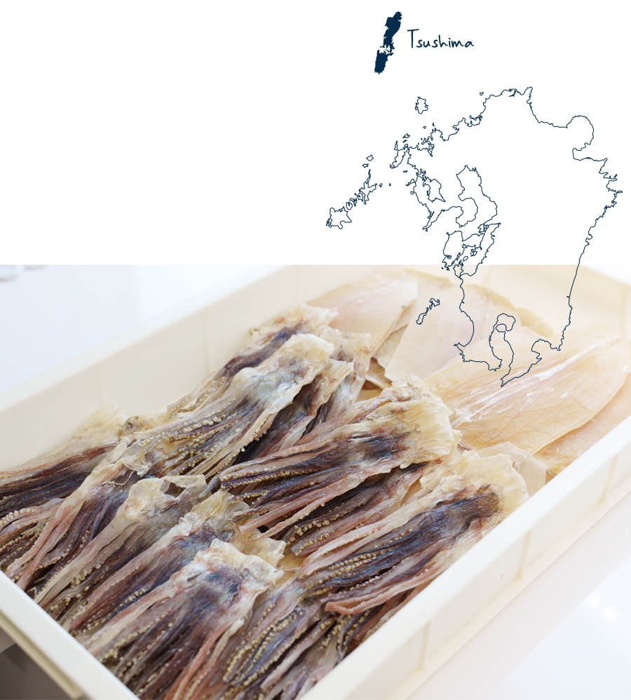 古くからイカ漁が盛んな対馬。私たちは位之端(いのはし)という小さな漁港から、天日で干した無添加の「のしイカ」や塩辛など、イカ本来の贅沢な旨味をお届けしています。